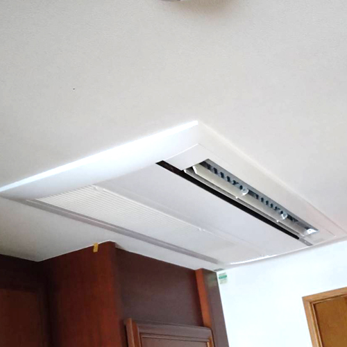 本日は東京都目黒区のお客様宅にて行いましたダイキン製ハウジングエアコンの入替え工事をご紹介いたします。既存の室内機は天カセ1方向形です。室内機の設置場所を考え2方向形にした方が効率が良いとご提案いたしました。
