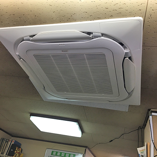 本日は東京都品川区の工場事務所にて施工しましたダイキン製業務用エアコンの入替え工事をご紹介いたします。既存がかなり古い機器のため形状が異なります。間口を広げてジプトンの補修も行い開口を整えました。