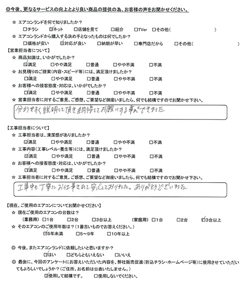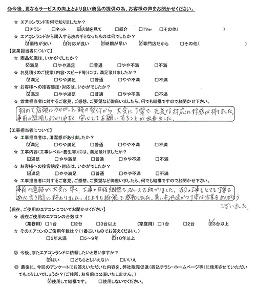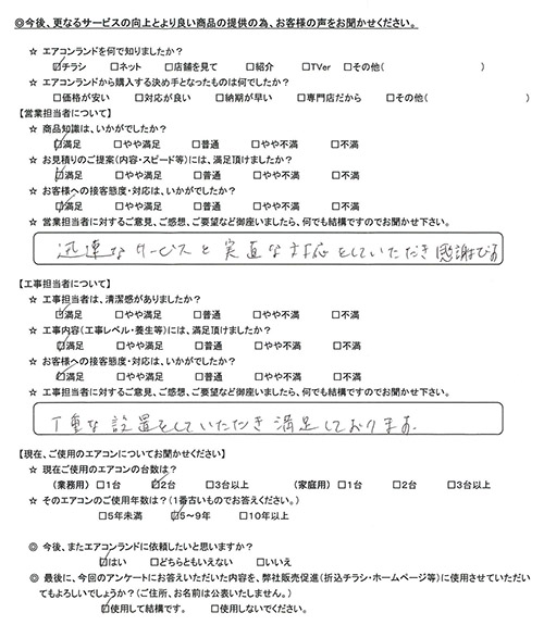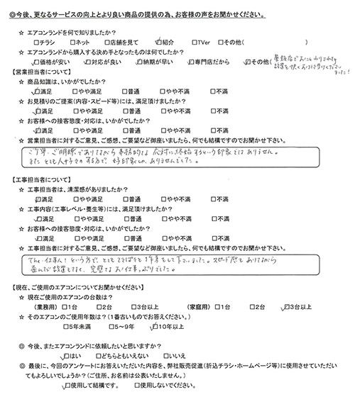 営業担当の評価:★5.0 エアコンの知識も豊富で、スピード感のある対応が良かったと思います。
