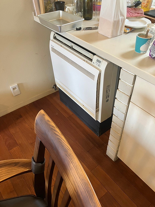 ハウジングエアコン床置型の施工事例です。設置してから10年以上経過しており、壊れる前に入替えをしたいとのご希望です。1年前にもご利用いただいたお客様で、前回の対応がよかったとのことで再度ご依頼いただきました。
