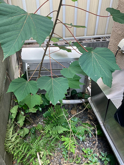 室外機は既存機器に付いていた風向調整板を再利用しました。風向調整板は取り付けることで室外機の設置環境を整える役割をします。