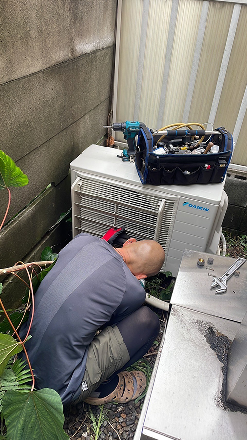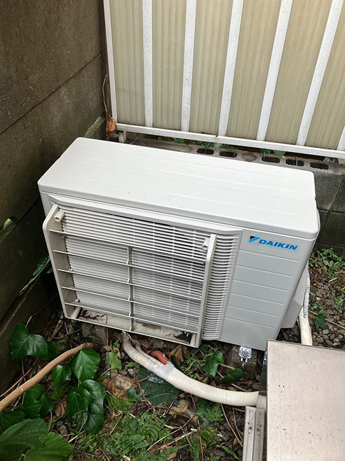入替え前の室内機は10年以上経過しているとのことで、だいぶ効きが悪くなっておりました。室外機は既存機器より小さくなるため、位置を確認しながら入替えをします。