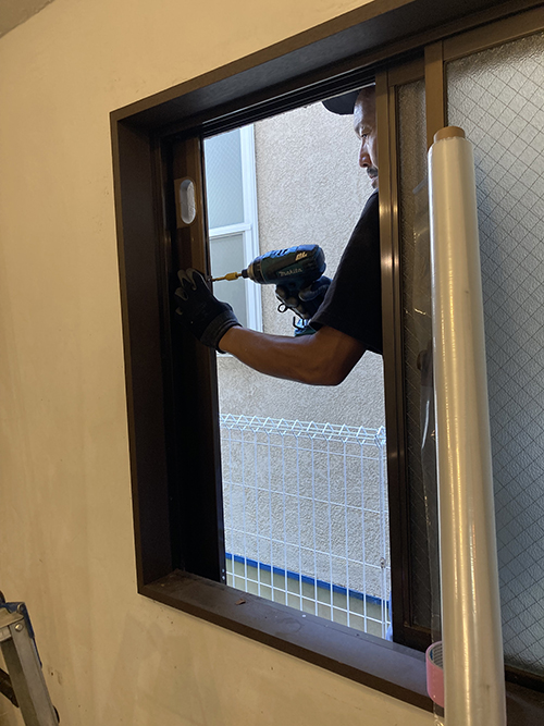 今回の建物躯体はコンクリート造で穴開けが難しいため、壁に穴を開けずに窓用パネル(※配管貫通スリーブ)を使用しました!!!
