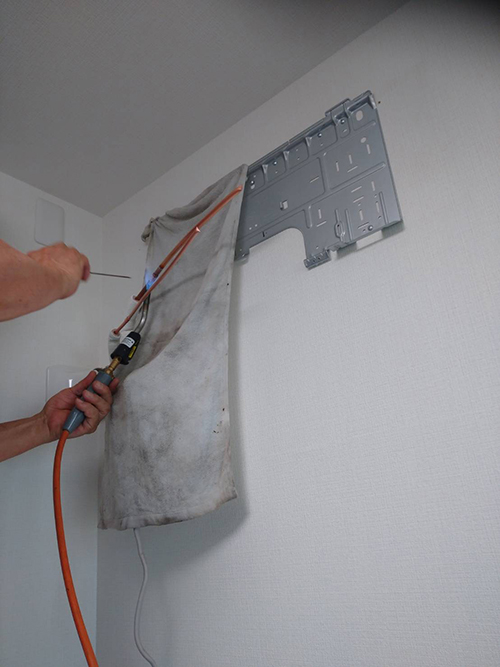 室内機の取り外し作業です。取り外しはスムーズにできました。
