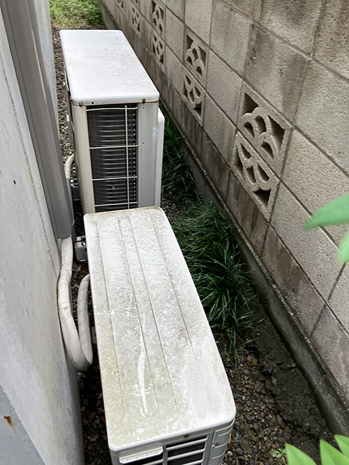 個人のお宅に設置されているパッケージ(業務用)エアコンとハウジングエアコンの入替え実例です。お客様は使っていたエアコンが壊れてしまい、急ぎで入替えを希望しておられました。ネットで検索して口コミの評価が良く、店も近所だったためご依頼をいただきました。