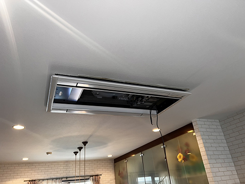 ハウジングは既存の天井開口サイズにぴったりと納まりました。事前調査にて天井裏の状況なども確認をしておりますので綺麗に仕上がりました。お客様からもご満足いただけました。