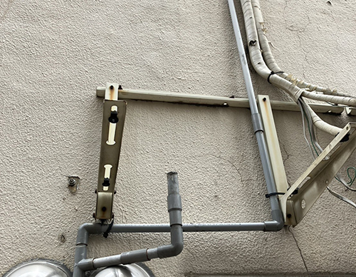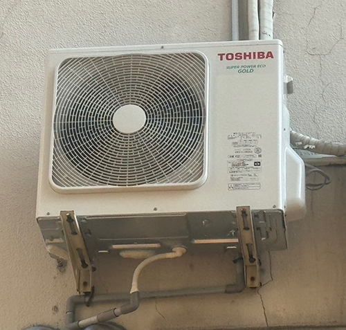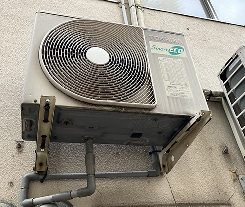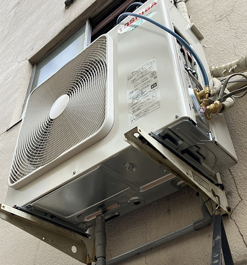 室内機のサイズは少々変わっておりますが、吊り金具、配管などを丁寧に調整し、違和感なく同じ場所に設置できました。室外機は建物裏側の作業場所、梯子を立てるスペース、搬出入経路をお客様に確保いただきました。