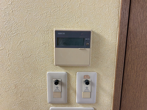 リモコンは既設機と同じ場所に設置いたしました。ボタンが大きくなり操作しやすくなりました。