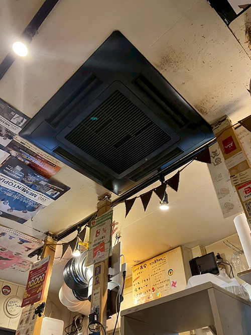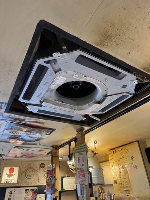 今回は居酒屋の天井に設置されている埋込カセット形マルチフロータイプ<ショーカセ>の入替え事例です。22年以上使用している機器で壊れてしまったため、入替えしたいとご来店いただきました。お客様は帰り道でエアコンランドの店舗前をよく通るため、以前から気になっていたそうです。エアコンが壊れたので今回勇気を出して入ってくださったそうです!店舗は入店しやすく清潔感があり、現地調査も来店したその日に来てくれ、何よりも施工実績を見て似たような工事をしていて安心感があったとおっしゃってくださいました。