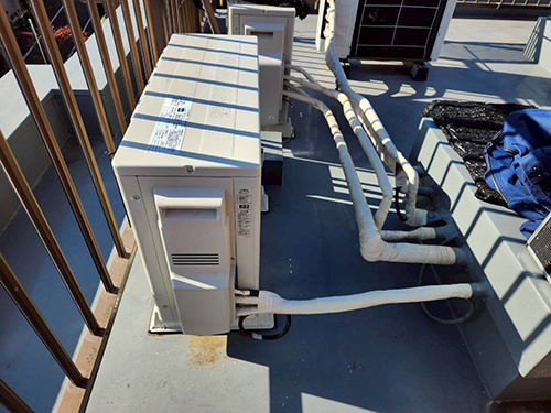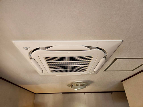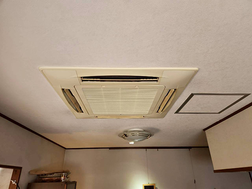 以前からお付き合いのあるお客様よりお問い合わせいただきました。ビル最上階にあるご自宅に天井埋込形エアコンが設置してあります。22年以上使用している機器で急に壊れてしまったため、入替えたいとのことです。何度も取引をしているお客様ですので、お見積りから施工までスムーズに進みました。ご信頼いただき有難い限りです。