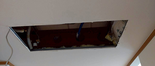 室内機を取り外し、天井裏を確認します。天井裏は普段目につかない部分です。施工不良が起きていても分かりにくい部分でもあります。エアコンランドでは見えない部分も確実な施工をしておりますのでご安心ください。