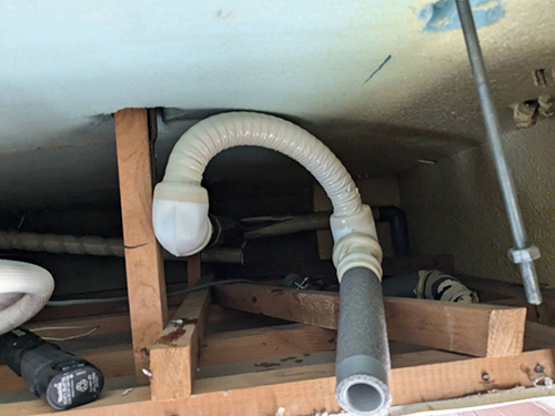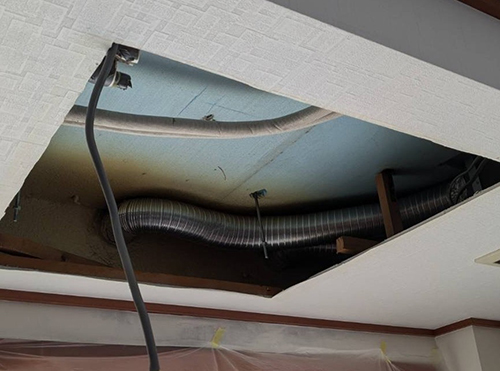 室内機を外して天井裏を確認します。天井裏は普段目につかない部分です。施工不良が起きていても分かりにくい部分でもあります。エアコンランドでは見えない部分も確実な施工をしておりますのでご安心ください。