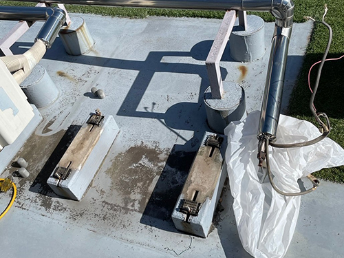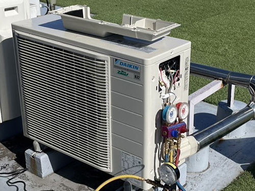 既存設備を加工し、再利用して新規室外機を接続します。