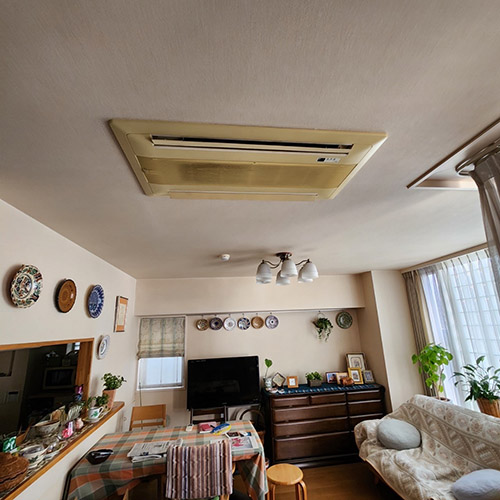 今回は天井カセット形のマルチエアコンの入替え実例です。お客様は20年使用したエアコンの効きがだんだん悪くなってきているので、経年劣化と今後の価格高騰を考慮し入替えを検討されておりました。