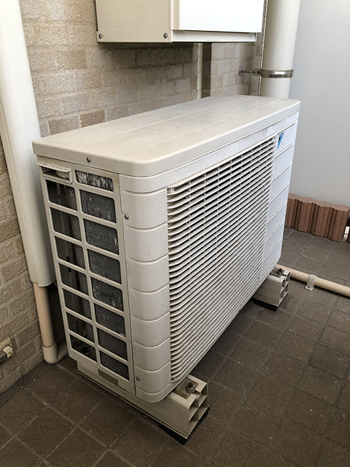 新規室外機を設置しました。室外機もほぼ同寸法なのでスペースに変化は無く、見た目が綺麗になりました。運転音もとても静かです。