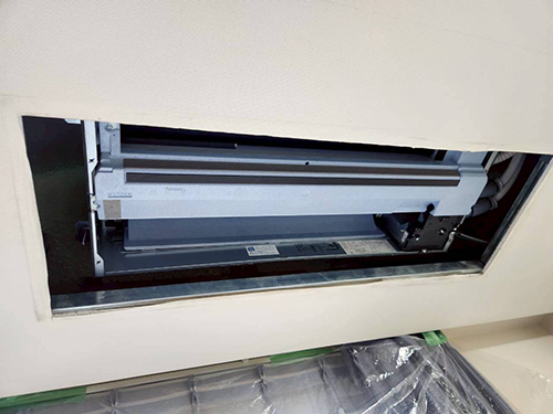 今回はフラットパネルを取り付け希望のお客様でした。フラットパネルはフィルター自動お掃除機能付きで、フィルターが昇降するパネルです。フラットパネルは懐寸法の制限があるため、状況次第で設置できない場合もございます。当日に設置ができないということにならないために、エアコンランドでは事前の現地確認をおすすめしております。エアコンランドでは知識豊富なスタッフが無料で現地調査を行うサービスを行っておりますので、まずはお気軽にご相談ください。
