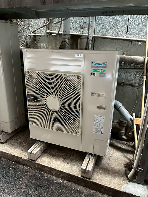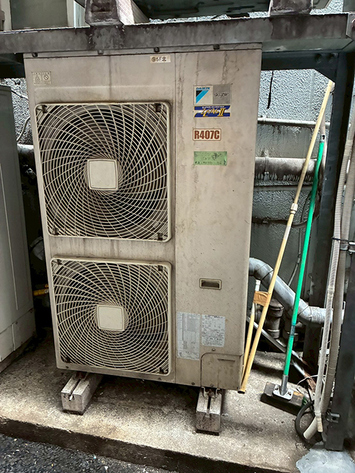 室外機は1階の建物の裏のスペースに設置してあります。搬出入も問題なく、作業スペースも十分にありそうです。