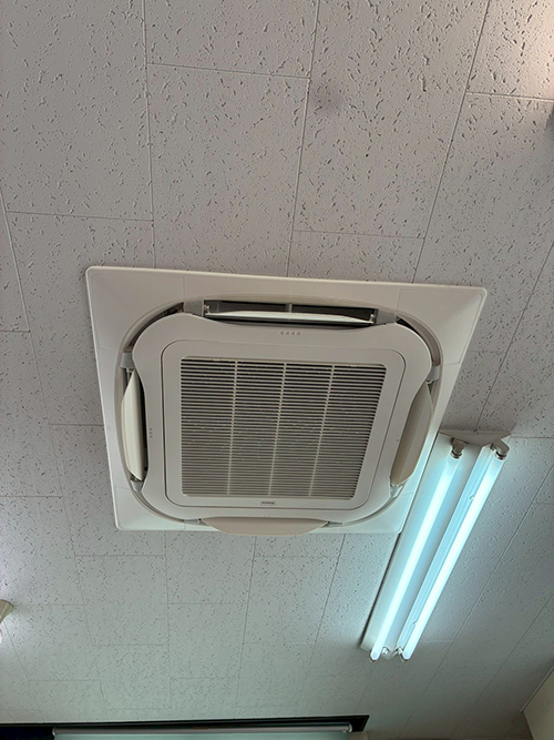 業務用天井カセット形エアコンの入替え実例です。以前からお付き合いのあるお客様より、壊れてしまったので入替えしたいとご連絡いただきました。何度も取引をしているお客様でしたので「安心、信頼、実績が違います」とおっしゃっていただきました。