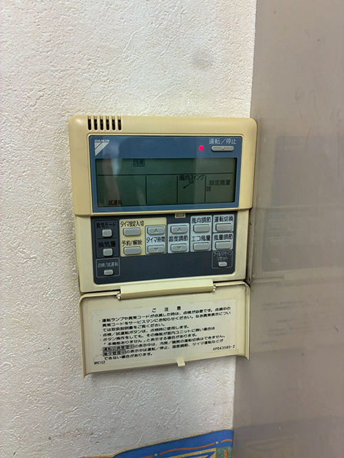 | 納入機器 | 【業務用エアコン(天井カセット形ラウンドフロータイプ)】 FHCP140FC、RZRP140BY、BYCP160EAF、BRC1G4(ダイキン・5馬力) |